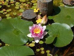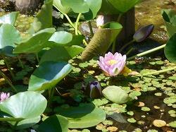 中庭の池に、今年もスイレンの花が咲きました。水面に鮮やかな緑色の葉を広げて,淡いピンク色の美しい花を次々に咲かせています。まるい葉の下には、小さなメダカたちや鯉の姿が・・・。子供たちにとっても大人にとっても,憩いの場です。ご来校の際,ご覧いただければと思います。