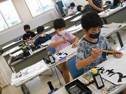 ▼静かな時間が流れていました。子どもたちは、文字の大きさや全体のバランスを考えながら、丁寧に書いて作品を仕上げていました。