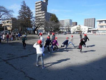 縦割り班で仲良く遊ぶロング仲良しタイム。今回は、5年生が中心になって進めました。縦割り班ごとに、6年生を囲んで記念撮影も行いました。昨日は、朝方の冷え込みが厳しく、雪も降るなど気温がとても低い一日となったため、今日に延期しました。子どもたちは笑顔で記念撮影をしたり、みんなで一緒に遊んだりして、楽しいひと時を過ごしていました。