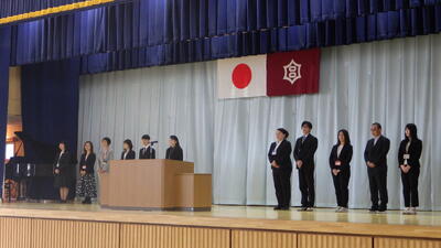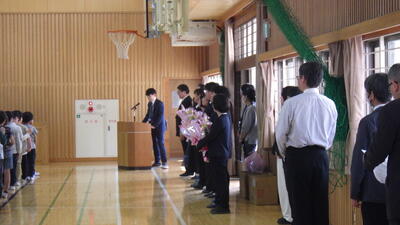 転退職員9名の先生方から挨拶をいただいた後,「花束贈呈」「校歌斉唱」などを行い,子供たちは離任する先生方に感謝の気持ちをもってお別れすることができました。
