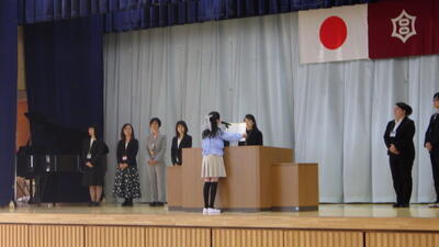 新入生紹介では,呼名に元気な声で返事をすることができました。