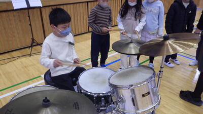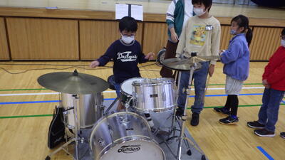 リコーダーで演奏をしたり,ドラム演奏体験をしたりしました。