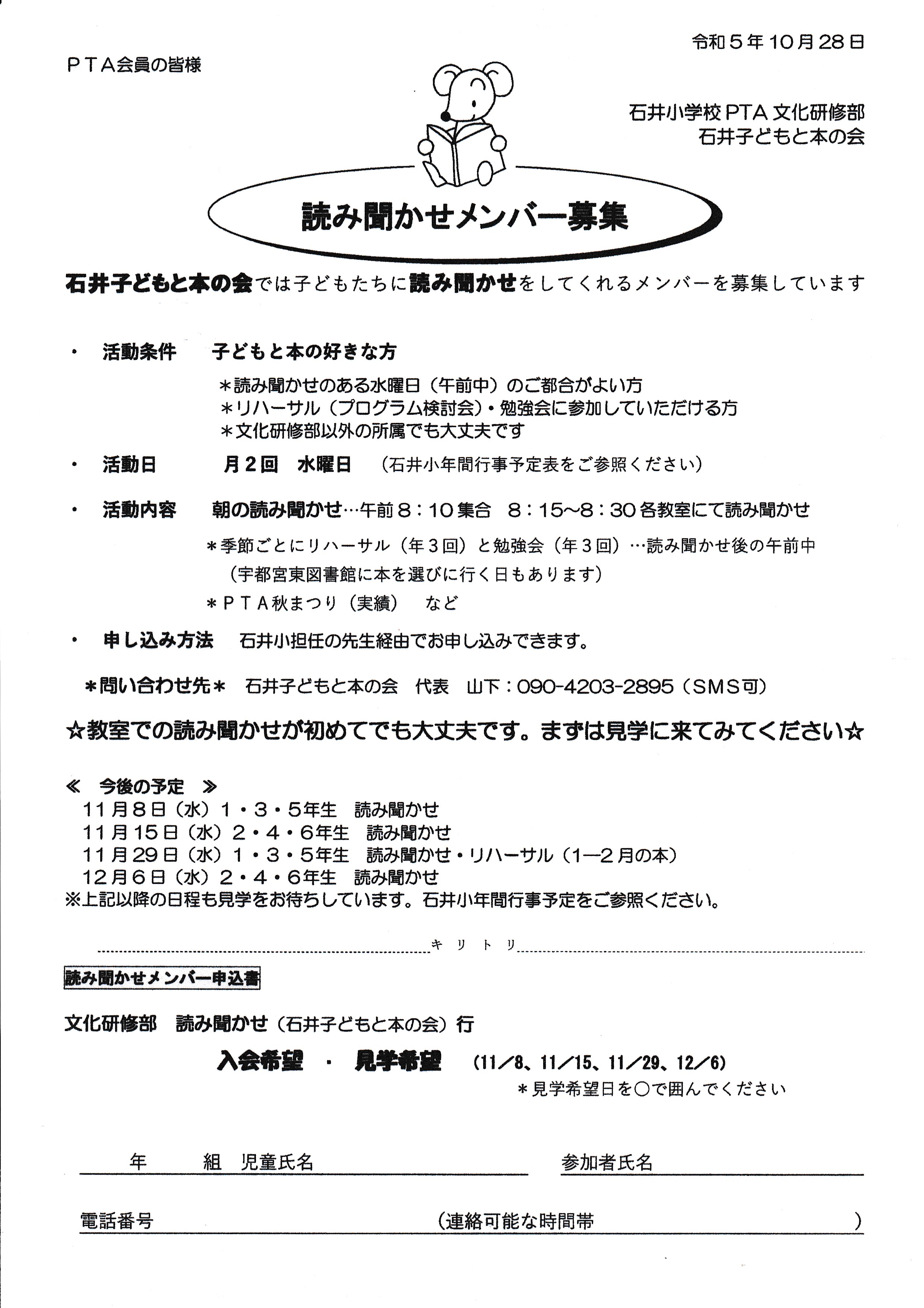 ※関心のある方は,石井小学校までご連絡いただければ幸いです。