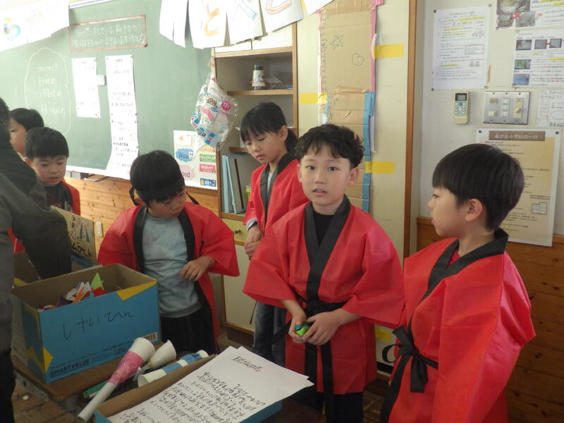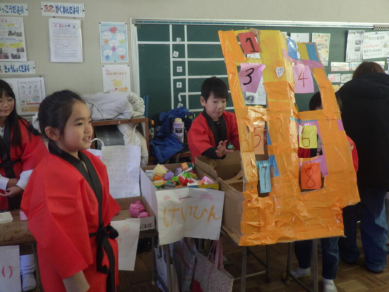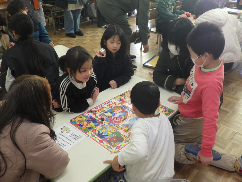 1年生では,地域のボランティアティーチャーの方々にご指導いただき,「昔遊び」を楽しみました。