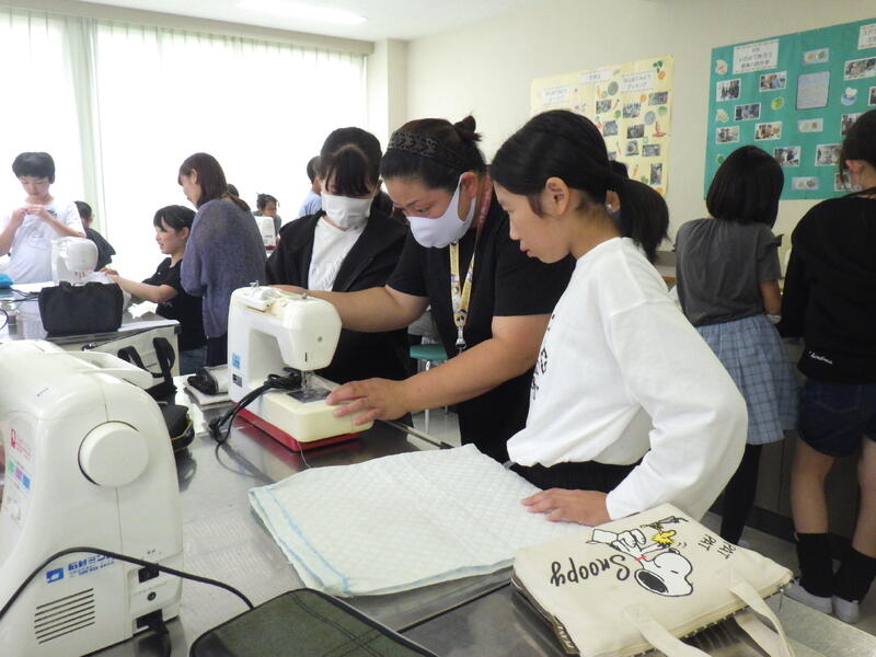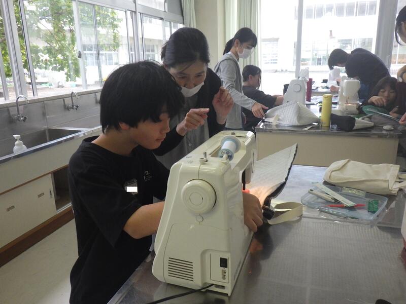 子どもたちはミシンに針や糸をセットし,真っ直ぐ縫ったり返し縫いをしたりして,トートバッグを仕上げていました。これから,自分で作ったトートバッグを使うのが楽しみですね。