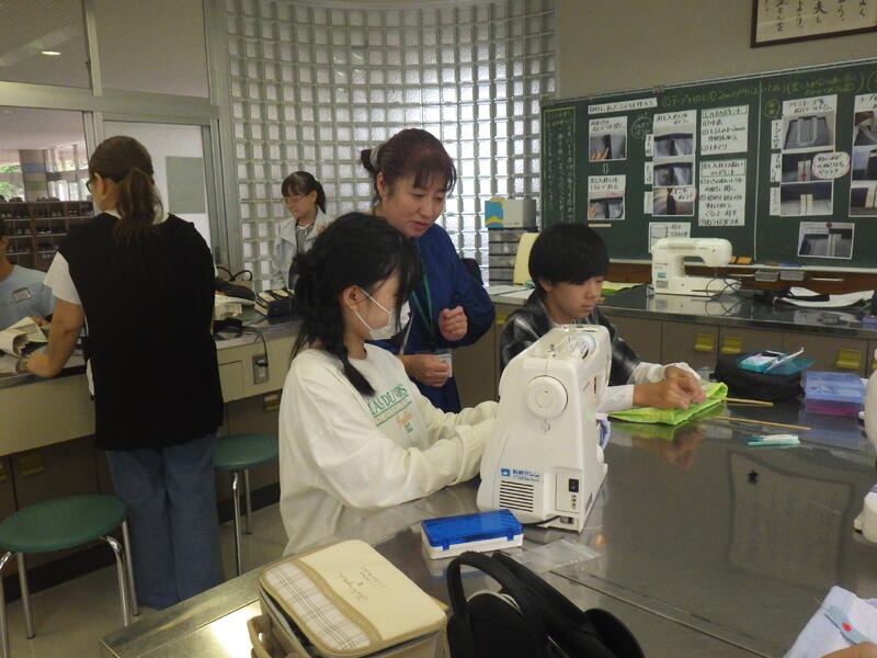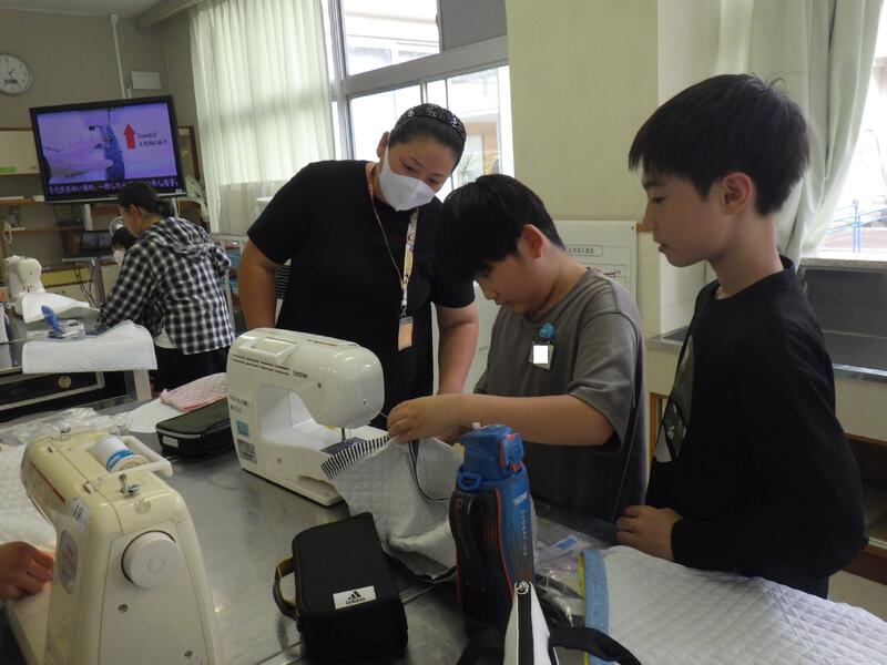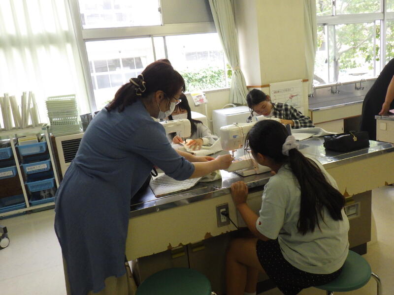 10月7日・9日,6年生の家庭科「ソーイングで生活を豊かに」において,学校支援ボランティアの皆様にお世話になり,ミシン縫いのご指導をいただきました。