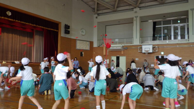 10月9日(木曜日),上学年の「親子ふれあい活動」が行われ,親子で「玉入れ」を楽しみました。