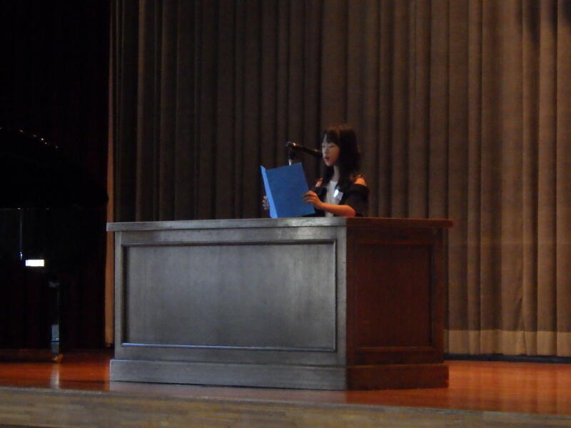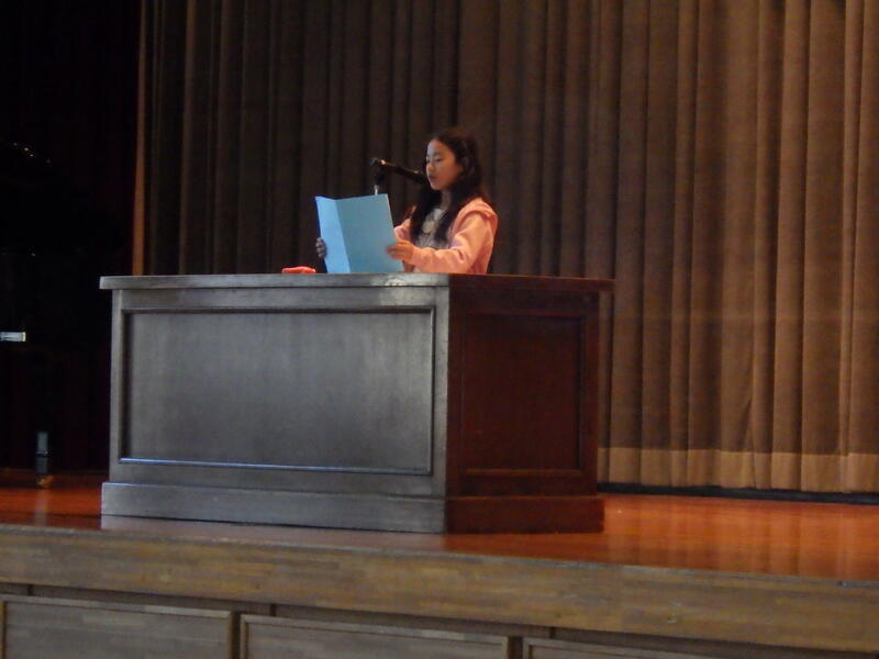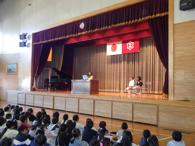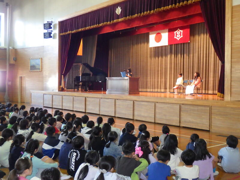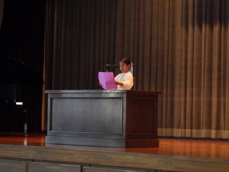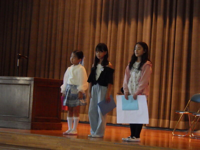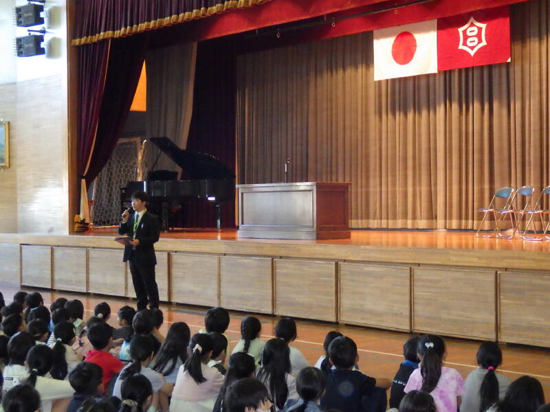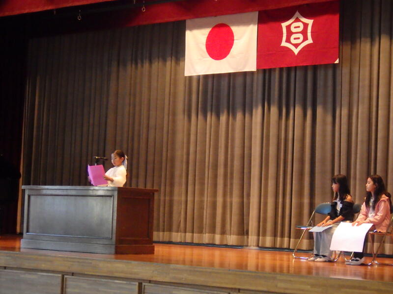 1・3・5年生の代表児童が1学期を振り返って,頑張ったことや思い出に残ったことなどを全校児童の前で発表しました。