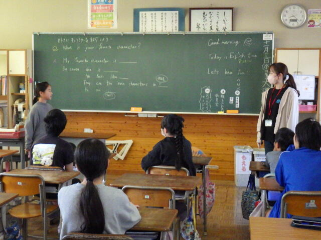 1年生は動物クイズに取り組み,元気いっぱいに英語で答えていました。