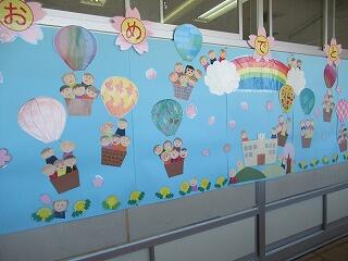 ろう下を通る子供たちは、メッセージに興味津々。