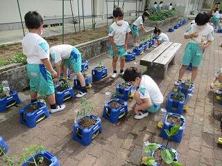 2年生が生活科の学習で野菜の苗を植え替えました。ピーマン・トマト・トマト・キュウリ等,子供たちは,自分で選んだ野菜を大切に植え替えました。収穫の日が楽しみです。