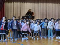 12月21日(水),今年度最後の音楽朝会が行われました。全校合唱に続き,1年生と6年生が日頃の音楽活動の成果を発表しました。愛嬌たっぷりの1年生の生き生きとした発表とさすが6年生と思えるような響きのある歌声や演奏が印象的でした。