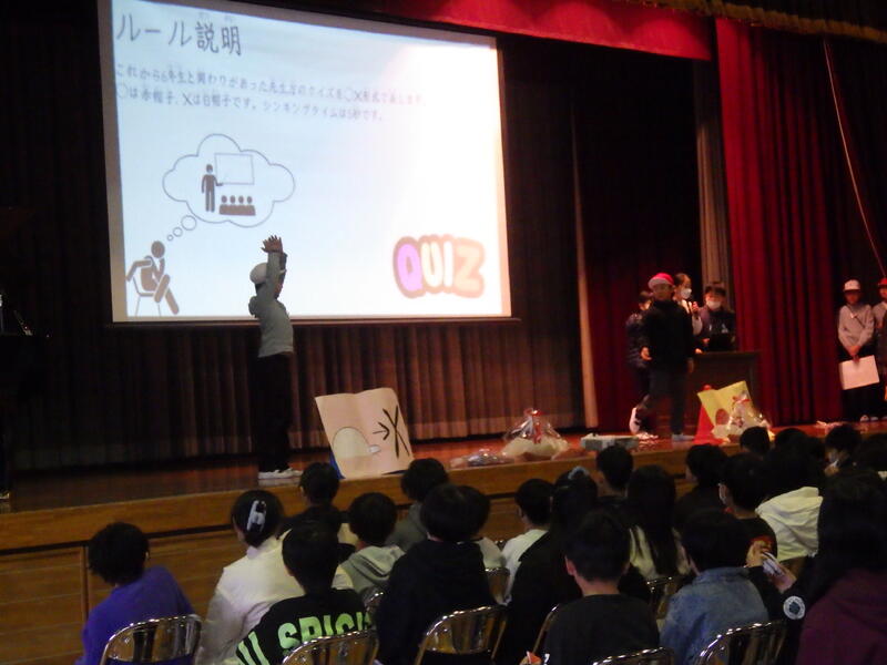3年生はクイズと「世界中の子どもたちが」の合唱でした。3年生の明るい歌声に,元気づけられました。
