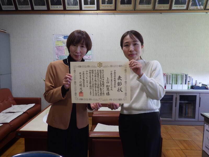 この度,本校の上山養護教諭が,「令和7年度宇都宮市教職員表彰」を受賞いたしました。