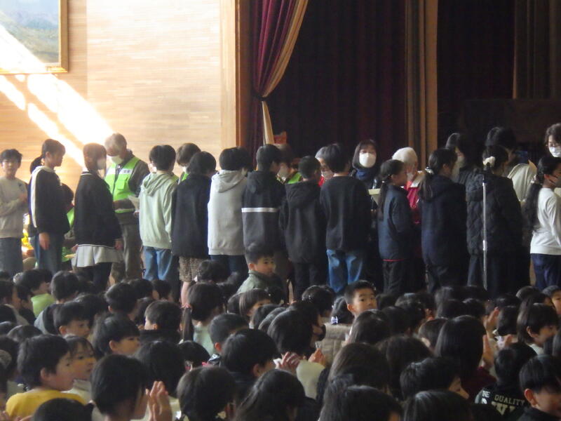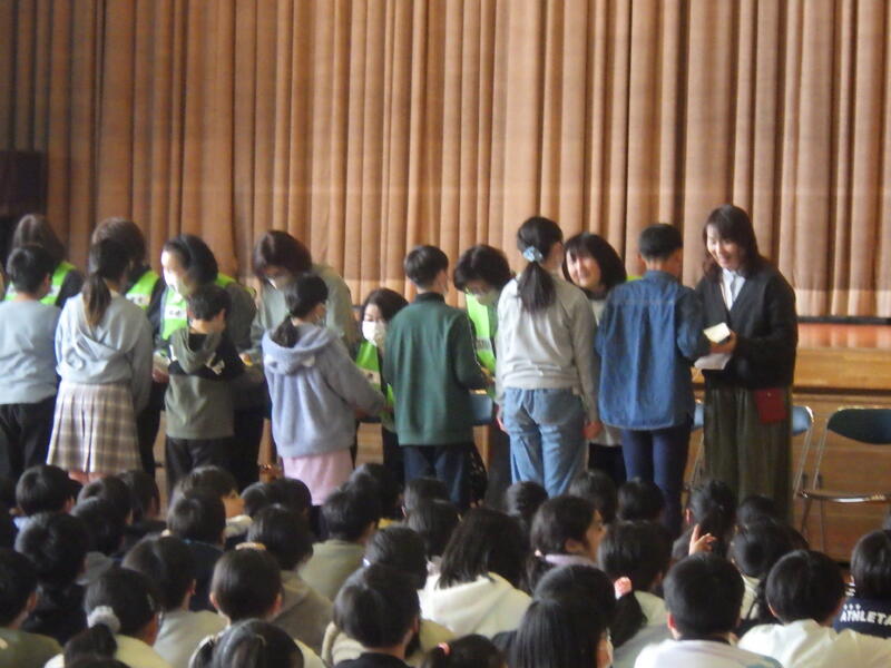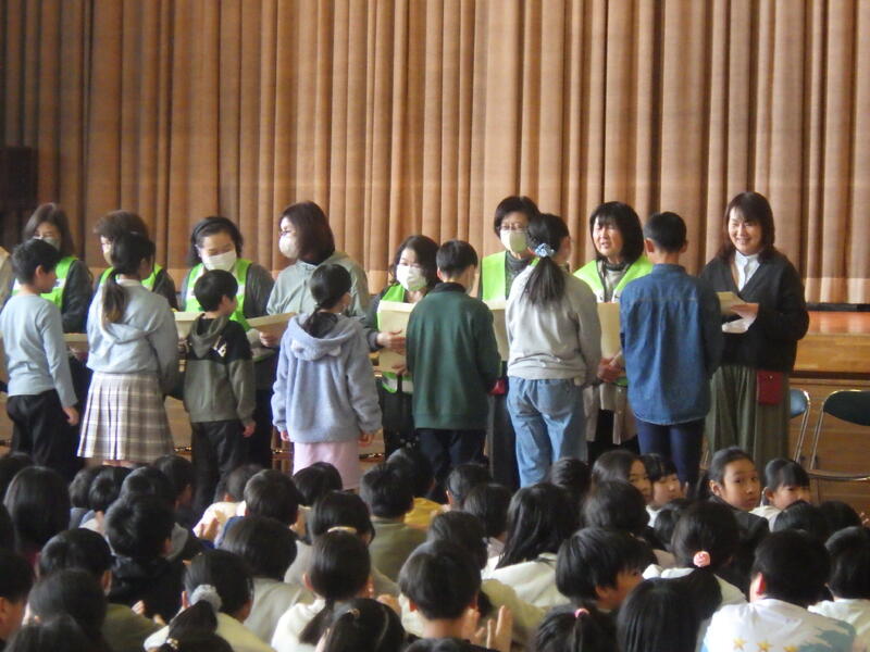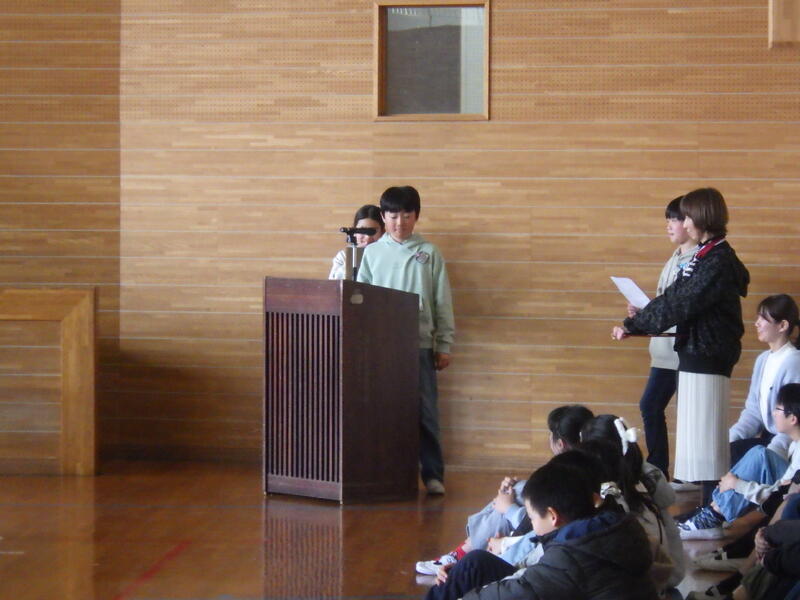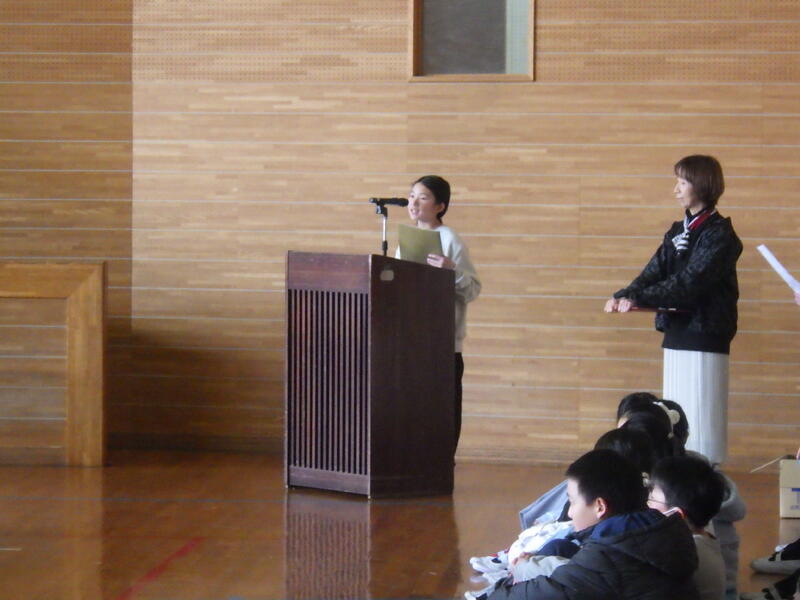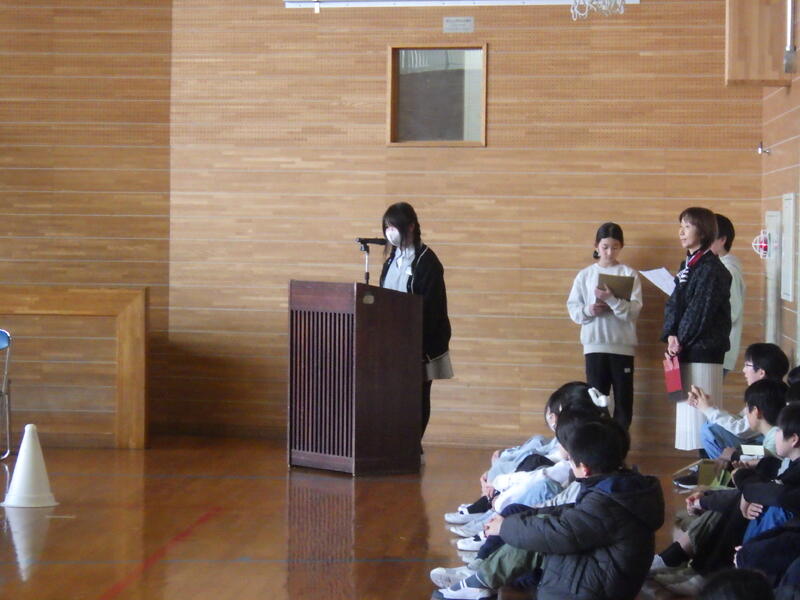 感謝の気持ちを伝えるために,代表児童があいさつをしたり,児童からお手紙を渡したりしました。