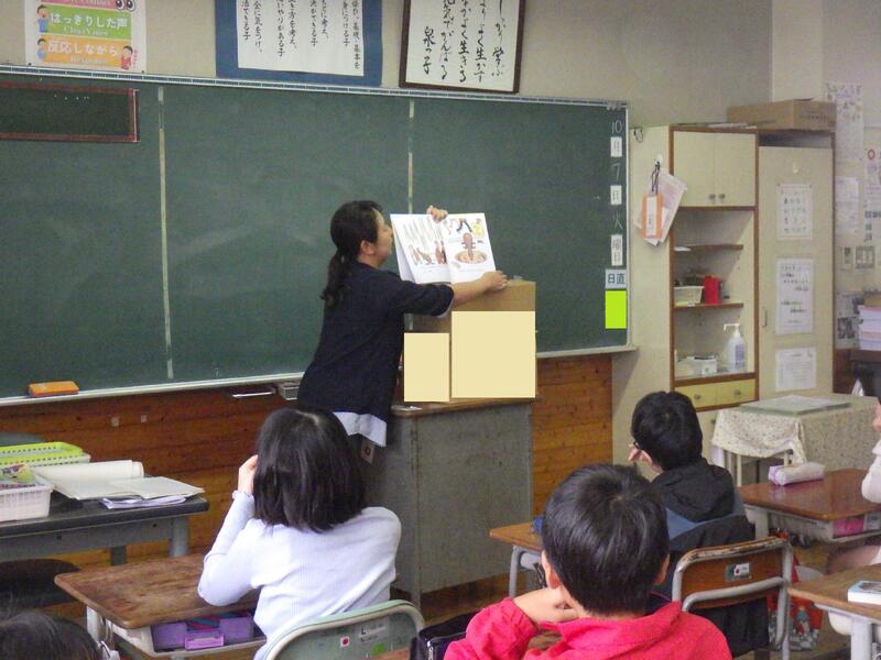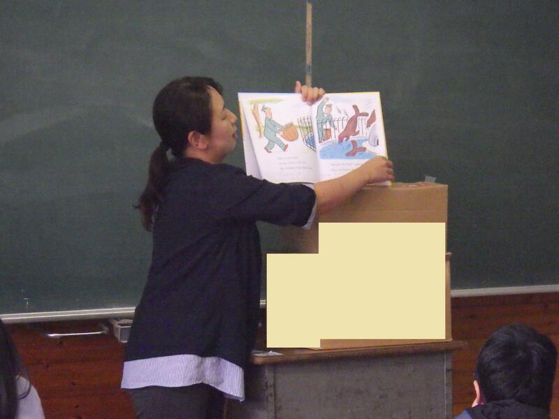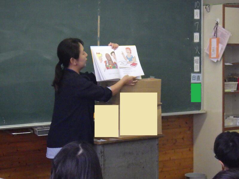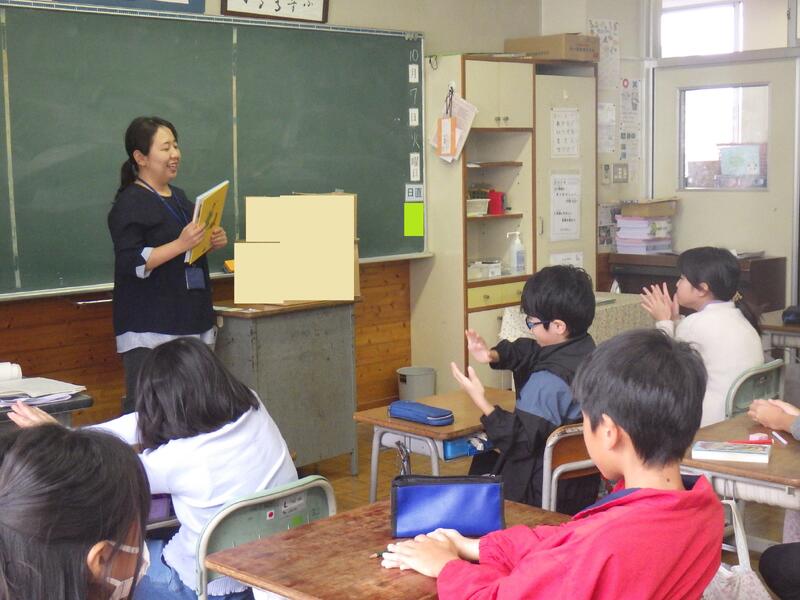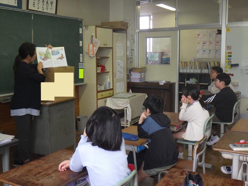 10月7日の朝の活動で,英語専科教員による「英語での朝の読み聞かせ」がありました。