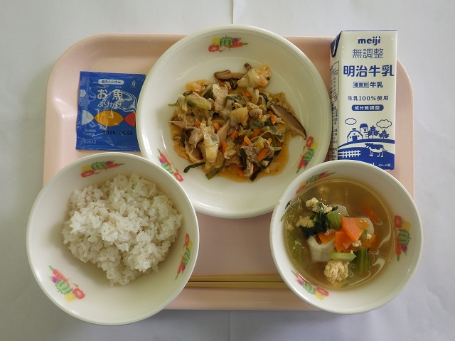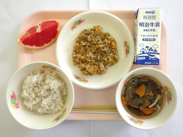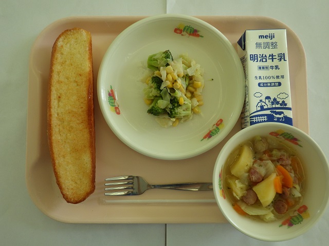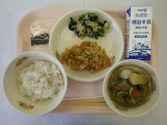今日から10月がスタートです。今日はこんさいのみそしるです。「こんさい」とは土の中で育つ根やくきを食べる野菜です。根を食べているのはにんじん、やまいも、だいこん、ごぼう、かぶ、さつまいもなどで、くきを食べているのはじゃがいも、さといも、れんこんなどです。ちなみにこの根菜は水からゆでるとよいといわれています。それは、火が通りにくいためお湯からゆでてしまうと表面だけ火が通り、中が生のままとなってしまうからです。水からゆっくりゆでることでまんべんなくに火を通すことができます。また、あまみが増して、煮くずれしにくくなりますよ。