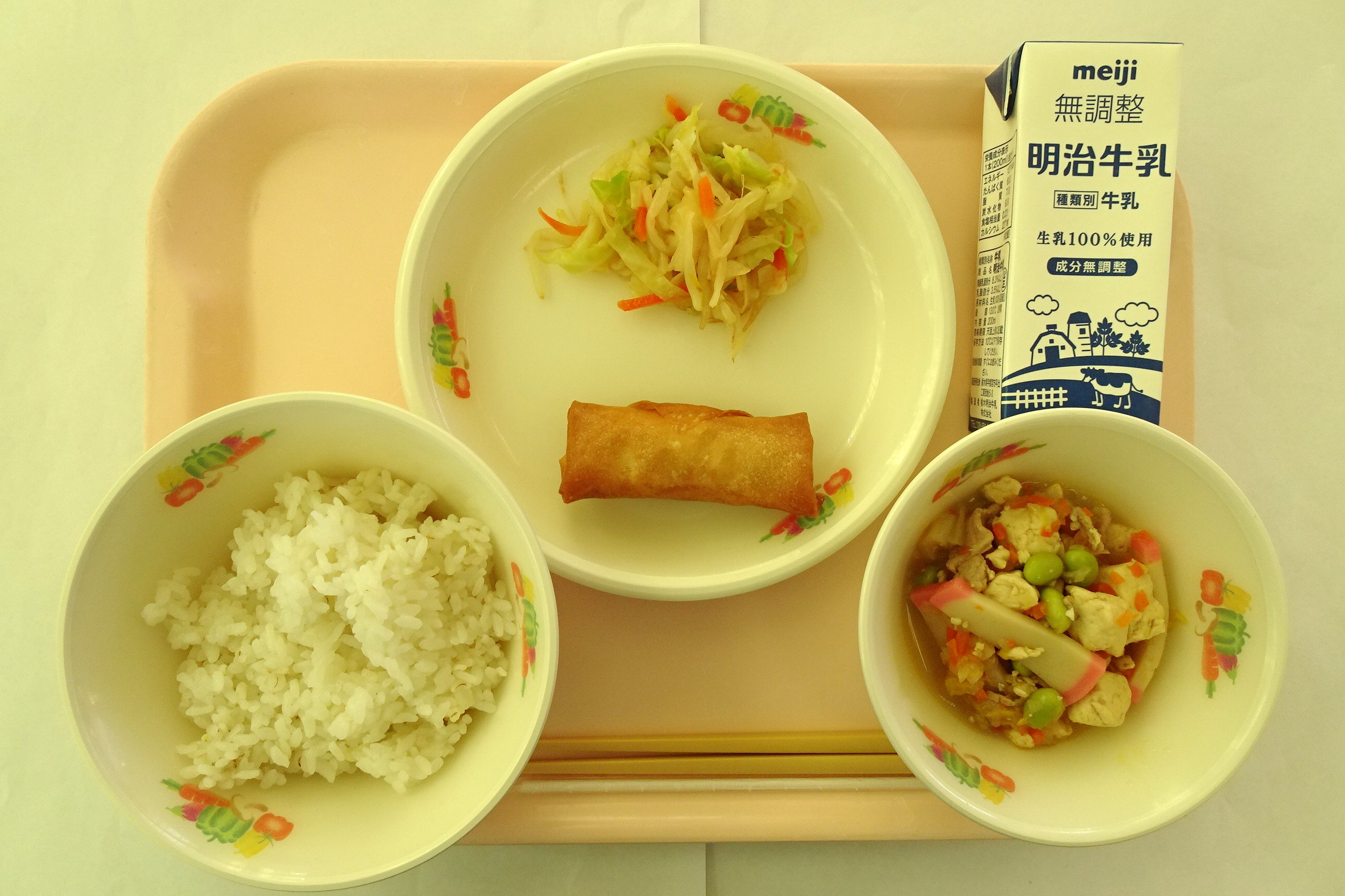 麦入りごはん 牛乳 にらまんじゅう おひたし 高野豆腐と野菜の炒め物 今日の高野豆腐は先週と調理法がちがいます。片栗粉をまぶして揚げることで、もちもちとした食感になります。お肉が苦手な人には、高野豆腐の唐揚げもおすすめです。 |