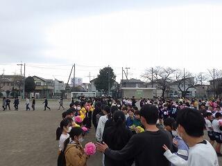 下級生の間を6年生が通り,感謝の気持ちを伝えました。