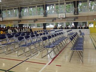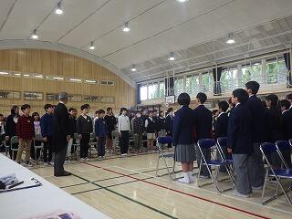 新しくなった体育館で,大きな声で校歌を響かせました。