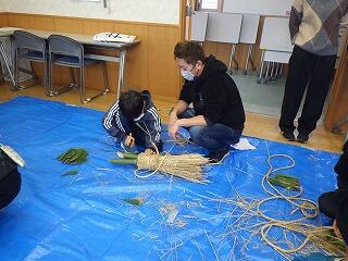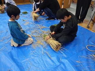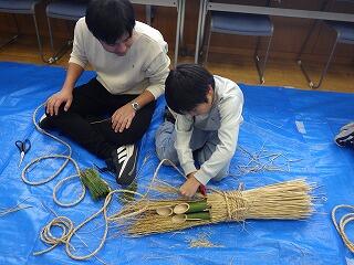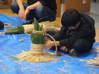 お正月飾りの意味も学び,それぞれの思いを込めて作りはじめました。
