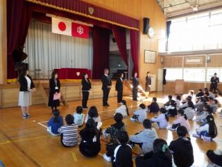 始業式の前に,着任式が行われ5名の先生をお迎えしました。