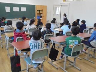 始業式で,クラスの先生が発表されると,子供たちは,近くの子供たちと顔を見合せてうれしそうに微笑んでいました。