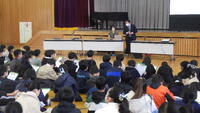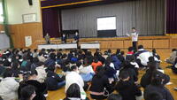 宇都宮市では,児童が将来の夢や希望,目標をいだき,やり抜く心を育むとともに,児童一人一人が様々な職業への関心を高め,働くことへの主体的な態度を育むキャリア教育の事業として,小学校5・6年生を対象とした「宮っ子『夢』教室」を今年度から全校で実施しています。今回は,コクヨ北関東販売株式会社から3名の方々をお招きし,会社の概要説明,入社動機や働いてみて感じていることなどのお話をしていただきました。子供たちはメモを取りながら真剣に聞いていました。