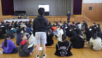 上河内地域学校園の交流連携事業として,上河内中学校の鈴木先生,中原先生にお越しいただき,6年生を対象に鈴木先生が6-1で国語を,中原先生が6-2で音楽の授業を行っていただきました。6年生は乗り入れ授業を通して,中学校の学習や生活への期待がますます高まったようです。