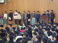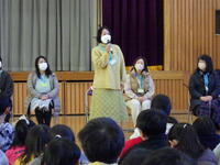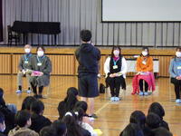 子供たちが安心して気持ちよく学校生活を送ることができるように,お手伝いをしてくださっているボランティアの皆さんをお招きして,児童会主催による「感謝の会」実施しました。この日を迎えるために,児童会の5・6年生を中心に,学年ごとに準備や練習をしてきました。当日は5・6年生が司会進行や招待者の紹介などを行い,クイズで楽しんだり歌やお手紙,花のプレゼントをしたりして感謝の気持ちを表すことができました。