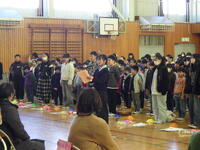 上河内地区老人クラブの皆様にご協力いただき,昔遊び体験をしました。9種類の伝承遊びを教えてくださるボランティアの皆様に挨拶をして,班ごとに各コーナーで昔遊びをしました。何度も練習するうちに上手になっていく様子も見られ,老人クラブの方々と楽しくふれ合うことができました。