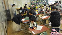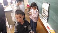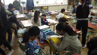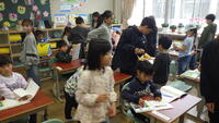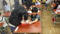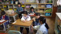 入学から2日目,初日よりは少し緊張がほどけて明るい声が聞こえてきました。朝の準備は,自分でできるようになるため,6年生がやさしくお手伝いをしてくれています。
