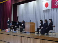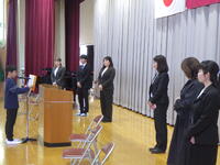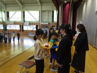 今年度,他校に転出した先生方とのお別れの会を行いました。6年生代表の中村さんによるお別れの言葉,児童代表による花束贈呈の後,転出した先生方からお別れの挨拶をいただきました。離任式後のお見送りでは,児童の列を通ってお別れをしました。お別れするのが悲しくて,涙を流してしまう児童もたくさん見られました。今まで本当にありがとうございました。