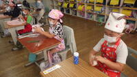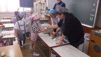 先月,収穫したお米をボランティアの方々に炊いていただき,1年生がおにぎりを作って食べました。一つ一つラップに包んでいただいたので,1年生は自分でも握りやすそうでした。「お米があまい」などの声が上がっていました。