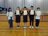 表彰伝達では,「あいさつ・言葉づかい名人」「新体力テストS認定」の表彰をしました。これからもさらに活躍してほしいと思います。