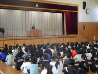 第1学期終業式を行いました。児童代表の言葉では,3年生の渡野辺さんと6年生の髙橋さんが,1学期に頑張ったことの発表をしました。2人ともとても堂々と発表することができました。校長からは,これまでに成長してきた様子を振り返り,2学期も引き続き頑張って,さらに成長してほしいと話しました。