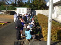 11月27日(木)の朝の時間に,1年生から6年生までの縦割り班でパンジーとノースポールの花の苗を植えました。各班の花壇で縦割り班ごとに,あいさつをしてから作業を始めました。上級生は,下級生が植えやすいように土を掘ったり,下級生にやさしく声を掛けて植え方を教えたりしていました。白・黄・紫色のきれいな花壇となりました。この後,チューリップなどの球根を植える予定です。