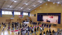1月14日(水)のロング昼休みに,体育委員会による「なわとび大会」が開催されました。前半は,縦割り班ごとに,大なわでの「8の字とび」に挑戦しました。後半は学年ごとに「短なわ」を使って競い合い,最後の一人になるまで粘り強くとび続ける姿が見られました。子どもたちは,とんでいる友達を応援したり,最後までとび続けた友達に対して,拍手を送ったりしていました。