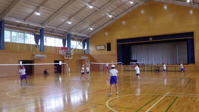 バドミントンやドッチボール。校庭を使ってスポーツ活動をすることもあります。