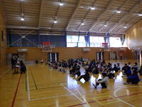 12月20日(金)に,不審者が侵入したときなどの緊急時に安全が確保できるよう,避難訓練を実施しました。今回は,不審者が昇降口から入り階段を上って,2階の教室へ向かったところで,教員数名が不審者を取り押さえるという設定で行いました。その後,体育館で警察スクールサポーターの方と上河内駐在所の方から『いか(ない)・の(らない)・お(おごえをだす)・す(ぐにげる)・し(らせる)』や生活の中で気を付けることについての話をいただきました。