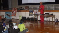 講師の先生をお招きし、和太鼓の演奏を聴いたり、実際に体験したりしました。
