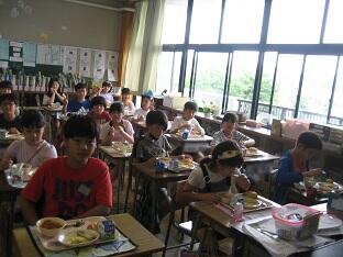 今日の給食は,牛丼,豆腐入りかきたま汁,さくらんぼゼリーです。