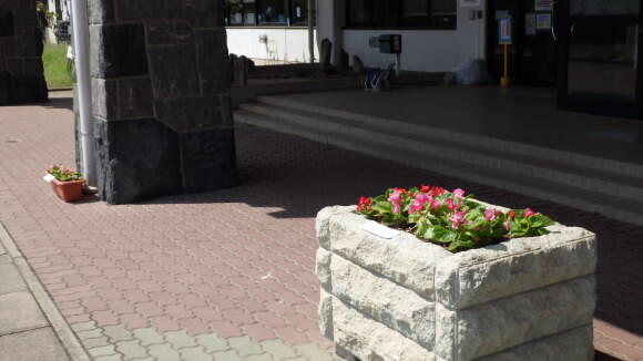 「人権の花運動」の花が植えられたプランターが届き,昇降口前や各学年の教室をきれいに彩っています。