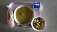 今日の給食には「かぼちゃのシチュー」が出ました。