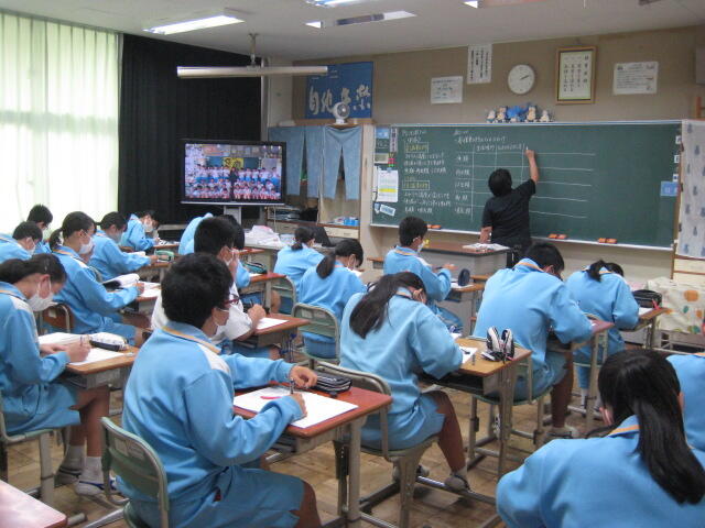 朝,2学期始業式がテレビ放送で行われました。校長先生からは,運動会成功を受けて合唱コンクール・文化祭でも思い出に残る行事にしてほしいこと,3年生は進路に向けて,1・2年生は後半の生活に目標をもって生活するようにとの話がありました。新型コロナウイルスと共生しながら,2学期も健康・安全に注意しながら,充実した学校生活を送るようにしましょう。