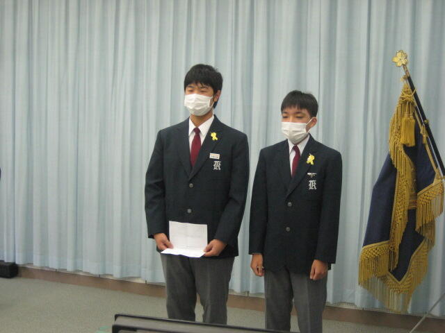 今朝,テレビ放送で生徒集会(いじめゼロ集会)を行いました。各クラスの生活委員が,これまでの状況を振り返り,これからの“いじめゼロ”に向けた取組について発表しました。