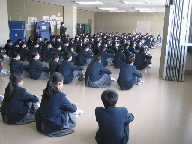 本日の5,6校時に3学年生徒,保護者を対象に県立高校説明会が行われました。今後の日程について,特別選抜・一般選抜について,出願から発表までの流れについて等,進路指導主事から話がありました。間違いのないよう,計画的に準備を進めていきます。