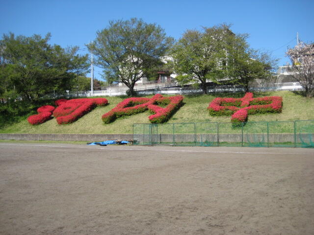校庭東側の斜面にあるつつじの植栽も,昨年より早く鮮やかな赤色に変わりました。他の草木も緑が色濃くなってきています。季節は春から夏へ移ろうとしています。
