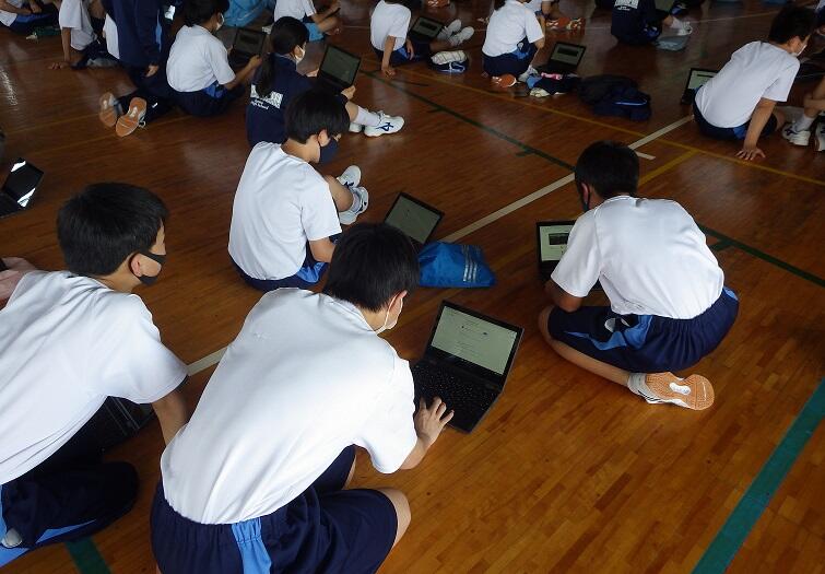 総合的な学習の時間でタブレットを使用(1年生)