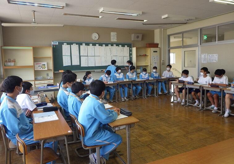 本日の4校時に社会科の横山有香教生,5校時に国語科の越愛瑛教生が研究授業を行いました。本校教職員も授業を参観し,将来,教員を目指している実習生にアドバイスを贈っていました。